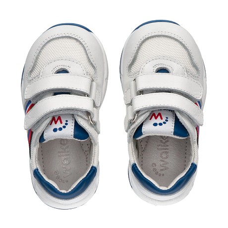 Кроссовки для мальчиков Walkey – это стильный и практичный выбор для вашего ребенка! Верх из белой кожи с яркими разноцветными полосками делает обувь не только функциональной, но и очень модной. Подкладка из кожи и резины термопластичной обеспечивает комфорт и надежность. Кроссовки с удобными липучками на передней части и съемной вставкой в носке подойдут для детей от 20 до 28 размеров. На фотографиях видны яркие полоски, липучки и съемная вставка в носке.