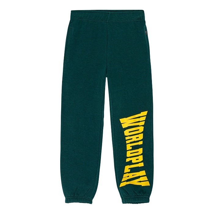 - 🎨 Дизайн: темно-зеленый цвет, надпись "WORLDPLAY", эластичная резинка на поясе, удобная посадка