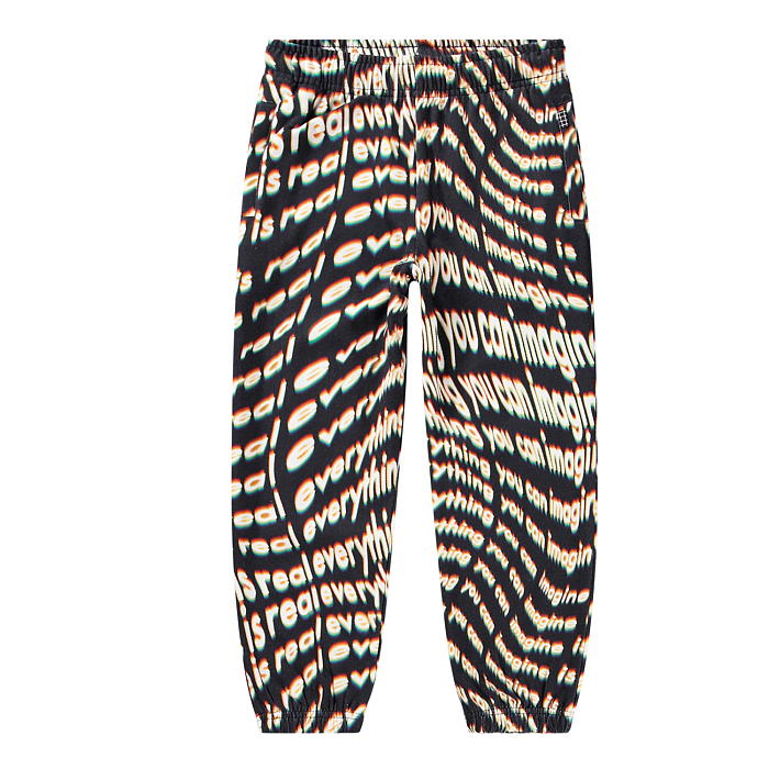 Тренировочные брюки Molo – это идеальный выбор для активных детей! Изготовленные из 100% натурального хлопка, они украшены ярким принтом 'Everything you can imagine is real'. Принт создает впечатление, что слова вращаются вокруг вас, создавая уникальный и стильный дизайн. Брюки с эластичной резинкой на талии обеспечивают комфорт и удобство при движении. Натуральный хлопок делает брюки гипоаллергенными и мягкими на коже. Качество от бренда из Дании делает эти брюки отличным выбором для вашего ребенка!