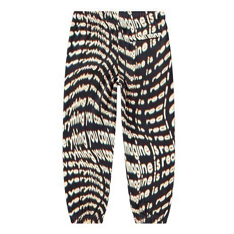 Тренировочные брюки Molo – это идеальный выбор для активных детей! Изготовленные из 100% натурального хлопка, они украшены ярким принтом 'Everything you can imagine is real'. Принт создает впечатление, что слова вращаются вокруг вас, создавая уникальный и стильный дизайн. Брюки с эластичной резинкой на талии обеспечивают комфорт и удобство при движении. Натуральный хлопок делает брюки гипоаллергенными и мягкими на коже. Качество от бренда из Дании делает эти брюки отличным выбором для вашего ребенка!