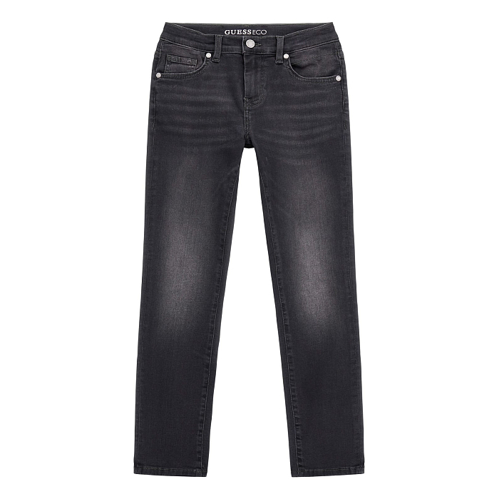 Джинсы Guess – это стильный и комфортный выбор для юных модников! Изготовленные из 78% хлопка, 21% полиэстера и 1% эластана, они идеально сидят благодаря эластичному кролю. Черный цвет подчеркивает классический и современный стиль. На фото видна классическая форма карманов, удобная застежка и качественная отделка. Джинсы от американского бренда Guess подходят для детей от 7 до 14 лет.