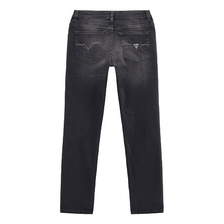 Джинсы Guess – это стильный и комфортный выбор для юных модников! Изготовленные из 78% хлопка, 21% полиэстера и 1% эластана, они идеально сидят благодаря эластичному кролю. Черный цвет подчеркивает классический и современный стиль. На фото видна классическая форма карманов, удобная застежка и качественная отделка. Джинсы от американского бренда Guess подходят для детей от 7 до 14 лет.