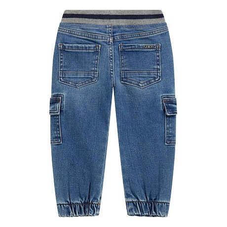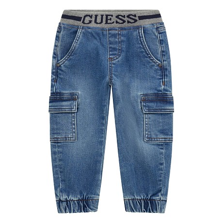 Брюки типа джинсы Guess – это идеальный выбор для мальчиков! Изготовленные из 92% хлопка, 7% эластомультиэстер и 1% эластан, они идеально подойдут для активного образа жизни. Темно-синий цвет создает классический и модный образ. На фото видна удобная посадка, мягкая эластичная резинка и стильные карманы. Бренд Guess известен своими качественными деталями и стильным дизайном, что делает эти брюки отличным выбором для вашего ребенка!