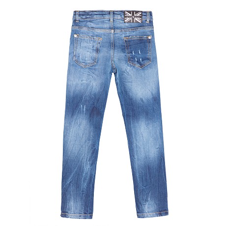 Джинсы для мальчиков John Richmond – это идеальный выбор для юных модников! Изготовленные из 99% хлопка и 1% эластана, они обеспечивают идеальную посадку и комфорт. Темно-синий цвет джинсов подчеркивает их стильный и современный дизайн. На фото видны характерные детали: красная нашивка на заднем кармане, логотип бренда на поясе и рваные детали на коленях. Джинсы идеально подходят для детей 8 лет (рост 128 см).
