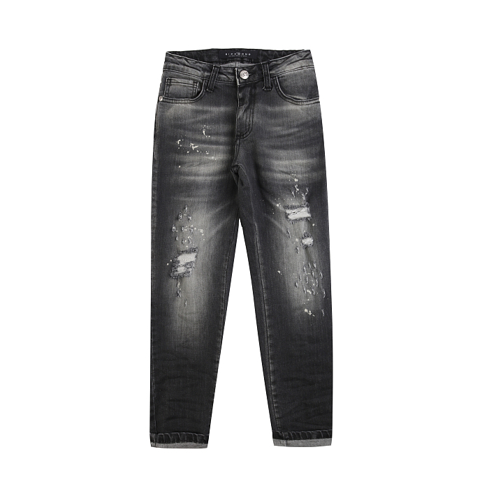 Джинсы для мальчиков темно-серые с рваными деталями