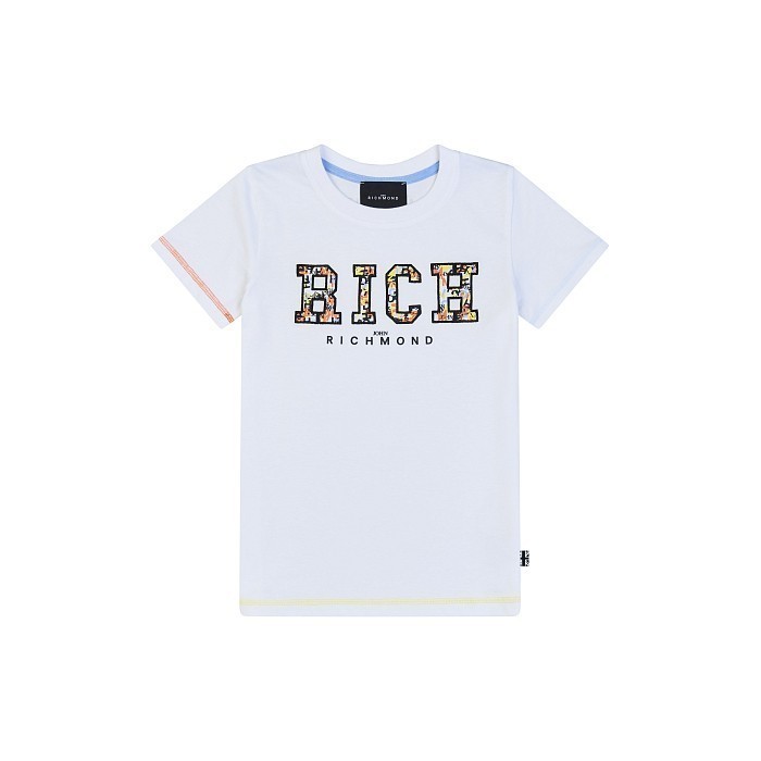 Футболка Richmond – это идеальный выбор для мальчиков! Изготовленная из 100% хлопка, она украшена ярким принтом Rich с контрастными вставками. Белый цвет основы дополняется красочным принтом, создавая яркий и стильный образ. Бренд Richmond гарантирует премиум качество, а удобная посадка обеспечит комфортное ношение. Быстрая доставка СДЭК по всей России.