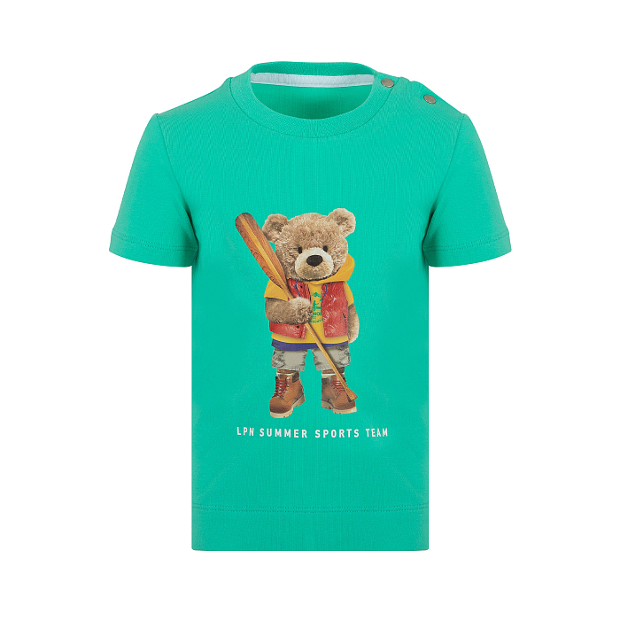 Футболка Lapin House – это идеальный выбор для мальчиков! Изготовленная из 92% хлопка и 8% эластана, она украшена очаровательным принтом медведя с лодочками на зеленом фоне. Нежная зеленая основа с ярким принтом медведя и лодочками создает игривое и в то же время уютное настроение. На фотографиях видна аккуратная детализация принта и мягкая текстура ткани. Качество от бренда из Греции и внимание к деталям делают эту футболку отличным выбором для вашего малыша!