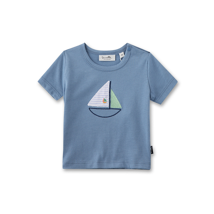 Футболка Sanetta Fiftyseven – это идеальный выбор для мальчиков! Изготовленная из 100% натурального хлопка, она украшена яркой аппликацией яхты с белым, зеленым и красным парусами. Нежная голубая основа с яркими акцентами создает ощущение морского приключения. На фотографиях видна аккуратная белая окантовка по краю и мягкая текстура ткани. Качество от бренда Sanetta и внимание к деталям делают эту футболку отличным выбором для вашего мальчика!