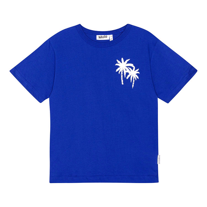 Футболка Molo – это идеальный выбор для вашего юного модника! Изготовленная из 100% натурального хлопка, она украшена очаровательными белыми пальмами на ярко-синем фоне. Нежная текстура ткани и удобная посадка делают эту футболку комфортной и стильной. На фотографиях видны аккуратные белые пальмы на груди и спине, а также логотип Molo на воротнике. Качество от датского бренда и внимание к деталям делают эту футболку отличным выбором для вашего ребенка!