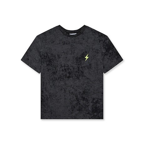 Футболка Chobi – это идеальный выбор для юных модников! Изготовленная из 100% хлопка, она украшена черным мраморным принтом и желтой молнией. Нежная черная основа с яркими акцентами создает модный и в то же время уютный образ. На фотографиях видна аккуратная желтая молния на груди и черная окантовка по краю. Качество от бренда из России и внимание к деталям делают эту футболку отличным выбором для вашего мальчика!