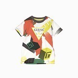Футболка Guess – это идеальный выбор для юных модников! Изготовленная из 100% хлопка, она украшена ярким принтом с геометрическими фигурами и логотипом Guess. На футболке видны красные, зеленые, желтые и черные фигуры, а также крупный логотип Guess в центре. Нежная текстура ткани и удобная посадка делают эту футболку отличным выбором для вашего ребенка!