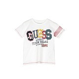 Футболка Guess – это идеальный выбор для юных модников! Изготовленная из 100% хлопка, она украшена ярким принтом с логотипом Guess и надписью "Authentic Denim Brand". Футболка с круглым вырезом и короткими рукавами идеально подходит для мальчиков. На фото видна яркая красная полоска на рукавах и красная контрастная окантовка по краю. Качество от американского бренда Guess и внимание к деталям делают эту футболку отличным выбором для вашего ребенка!
