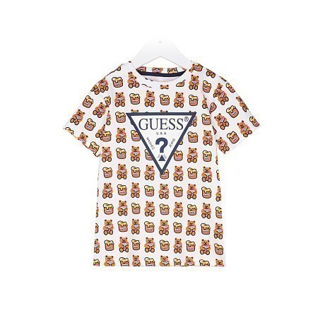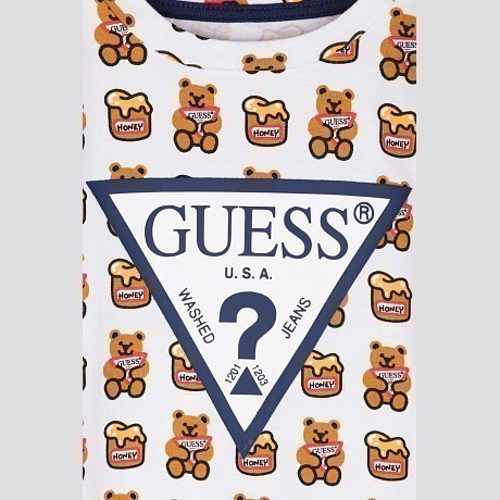 Футболка Guess – это идеальный выбор для мальчиков 5 лет! Изготовленная из 95% хлопка и 5% эластана, она украшена очаровательными медведями, держащими баночки меда. Белая основа с яркими медвежатами и баночками меда создает нежное и приятное настроение. На фотографиях видна аккуратная контрастная окантовка по краю и мягкая текстура ткани. Качество от бренда из США и внимание к деталям делают эту футболку отличным выбором для вашего ребенка!