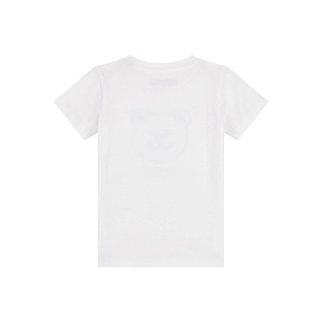 Футболка Guess – это идеальный выбор для мальчиков! Изготовленная из 100% хлопка, она украшена очаровательным принтом медведя с большими ушами и улыбкой. Нежная белая основа с черным принтом медведя создает игривое и в то же время уютное настроение. На фотографиях видна аккуратная черная контрастная окантовка по краю и мягкая текстура ткани. Качество от бренда из США и внимание к деталям делают эту футболку отличным выбором для вашего малыша!