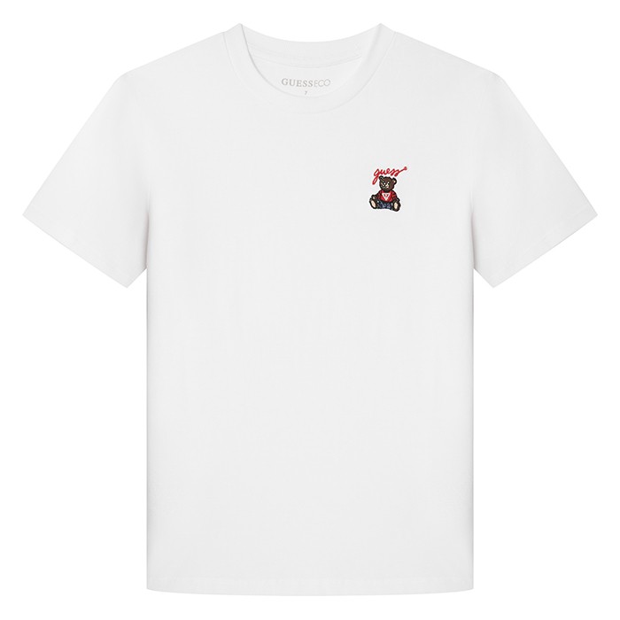 Футболка Guess – это идеальный выбор для мальчиков от 8 до 14 лет! Изготовленная из 100% хлопка, она украшена очаровательным принтом медведя с надписью Guess. Белая основа с черным медведем и красной надписью создает классический и модный образ. На фотографиях видна аккуратная вышивка медведя с надписью Guess на груди и мягкая текстура ткани. Качество от бренда из США и внимание к деталям делают эту футболку отличным выбором для вашего подростка!
