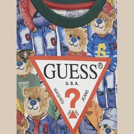 - 🎨 Дизайн: медведи в кепках, солнцезащитные очки, джинсы, логотип Guess