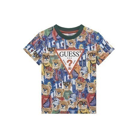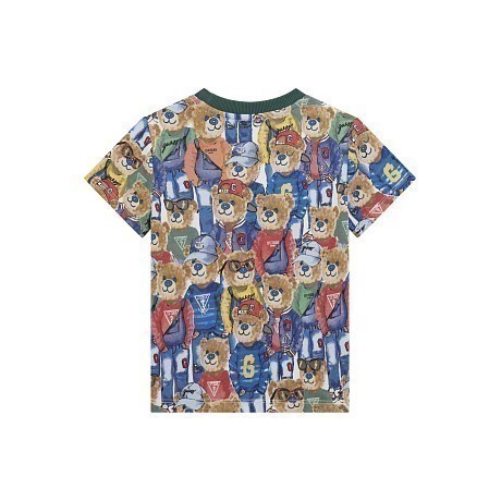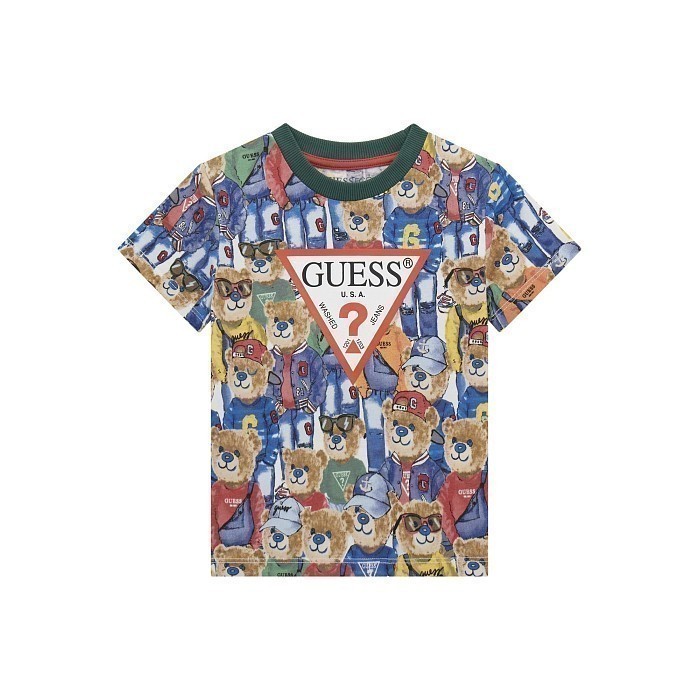 Футболка Guess для мальчиков – это идеальный выбор для стильных и активных детей! Изготовленная из 100% хлопка, она украшена очаровательными медведями в стиле джинсов, одетыми в кепки, солнцезащитные очки и джинсы. Мягкая и приятная на ощупь ткань создает комфорт для вашего ребенка. На фотографиях видны яркие медведи в разных позах и настроениях, а также логотип Guess на груди. Качество от бренда из США и внимание к деталям делают эту футболку отличным выбором для вашего малыша!