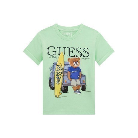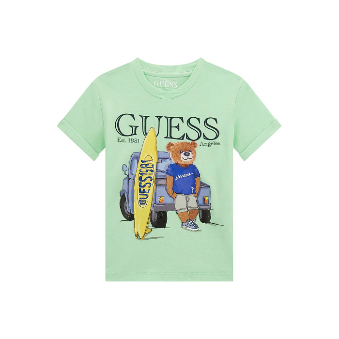 Футболка Guess – это идеальный выбор для мальчиков! Изготовленная из 100% хлопка, она украшена очаровательным принтом медведя с доской для серфинга и надписью "Guess". Мягкая и приятная на ощупь ткань создает комфорт для вашего ребенка. На фотографиях видна аккуратная вышивка медведя и доски для серфинга на передней части футболки, а также надпись "Guess" в нижней части. Качество от бренда из США и внимание к деталям делают эту футболку отличным выбором для вашего мальчика!