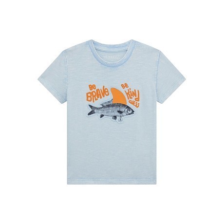 Футболка Guess для мальчиков – это идеальный выбор для вашего ребенка! Изготовленная из 100% хлопка, она украшена очаровательным принтом акулы и надписью "Be Brave Be King". Нежная голубая основа с яркими оранжевыми акцентами создает игривое и вдохновляющее настроение. На фотографиях видна аккуратная оранжевая контрастная окантовка по краю и мягкая текстура ткани. Качество от бренда из США и внимание к деталям делают эту футболку отличным выбором для вашего малыша!