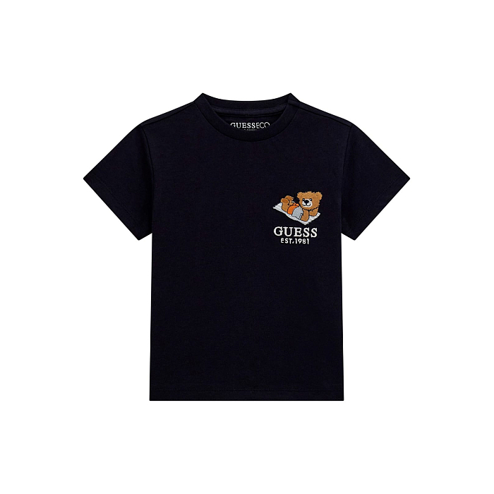 Футболка Guess – это идеальный выбор для детей 4-6 лет! Изготовленная из 100% хлопка, она украшена очаровательным принтом медведя с книгой и надписью Guess. Темно-синий цвет создает стильный и неповторимый образ. На фотографиях видна аккуратная вышивка медведя с книгой и надписью Guess, а также мягкая текстура ткани. Качество от бренда из США и внимание к деталям делают эту футболку отличным выбором для вашего ребенка!