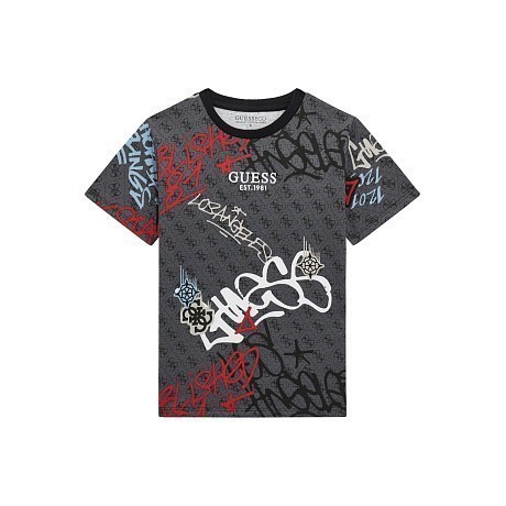 Футболка Guess – это идеальный выбор для мальчиков! Изготовленная из 100% хлопка, она украшена ярким граффити и логотипом бренда. Футболка идеально подойдет для детей от 2 до 5 лет, обеспечивая комфорт и стиль. На фотографиях видны яркие граффити в различных цветах, логотип Guess и надписи на английском языке. Мягкая текстура ткани и эластичная резинка по горловине делают эту футболку отличным выбором для вашего ребенка!