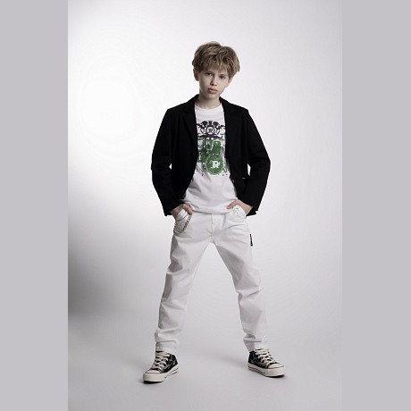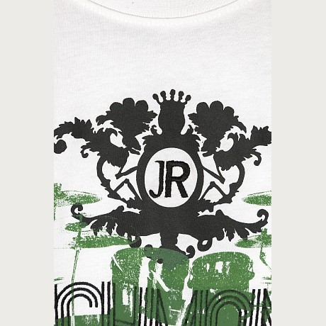Футболка Richmond – это идеальный выбор для юных модников! Изготовленная из 100% хлопка, она украшена ярким принтом барабанов и логотипом Richmond. Белый цвет основы с зелеными барабанами и черным логотипом создает современный и динамичный стиль. На фотографиях видна аккуратная черная окантовка по краю и мягкая текстура ткани. Качество от бренда Richmond и внимание к деталям делают эту футболку отличным выбором для вашего ребенка!
