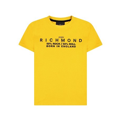 Футболка John Richmond – это идеальный выбор для юных модников! Изготовленная из 100% хлопка, она украшена стильным принтом с надписью "50% ROCK / 50% ROLL BORN IN ENGLAND". Яркий желтый цвет и черный принт создают яркий и стильный образ. На фотографии видна аккуратная вышивка по краю и мягкая текстура ткани. Качество от бренда из Англии и внимание к деталям делают эту футболку отличным выбором для вашего ребенка!