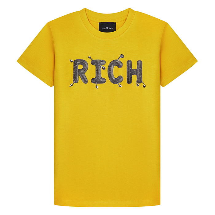 Футболка John Richmond – это идеальный выбор для вашего юного модника! Изготовленная из 100% хлопка, она украшена крупным принтом RICH в виде букв, которые выглядят как заколки для волос. Футболка с круглым вырезом и короткими рукавами подойдет для мальчиков от 2 до 4 лет. На фотографиях видна аккуратная вышивка и мягкая текстура ткани. Качество от бренда John Richmond делает эту футболку отличным выбором для вашего ребенка!