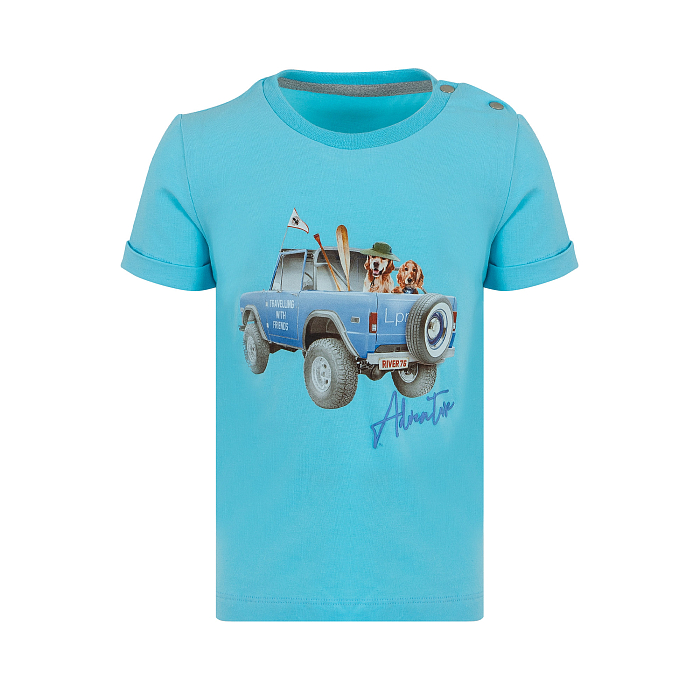 Футболка для мальчиков бирюзового цвета с принтом грузовика и собак