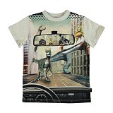 Футболка Molo – это идеальный выбор для юных модников! Изготовленная из 100% хлопка, она украшена ярким принтом с динозаврами и городской темой. На футболке изображены динозавры, стоящие на дороге, смотрящие в зеркало, а также городской пейзаж с высотками. Нежная текстура ткани и удобная посадка делают эту футболку отличным выбором для вашего ребенка!