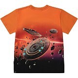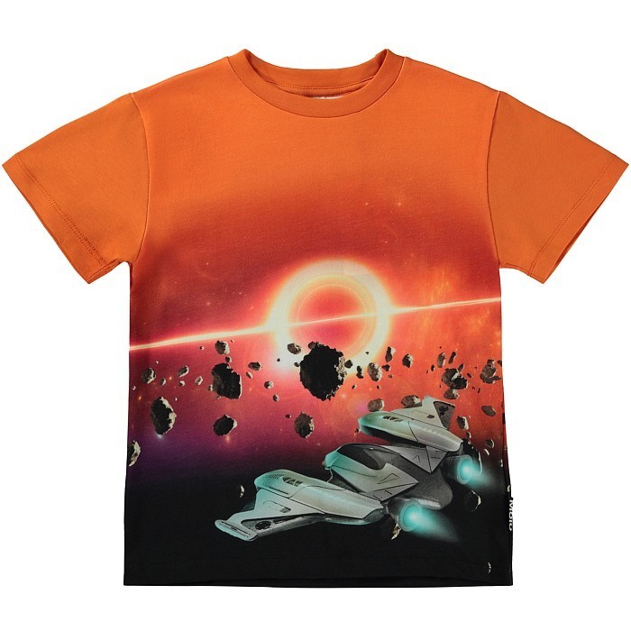 Футболка Molo – это идеальный выбор для мальчиков! Изготовленная из 100% натурального хлопка, она украшена ярким космическим принтом с кораблями, астероидами и яркими световыми эффектами. На передней и задней стороне футболки видна космическая сцена с кораблями, летящими среди астероидов на фоне яркого солнца. Нежная текстура ткани и удобная посадка делают эту футболку отличным выбором для вашего ребенка!