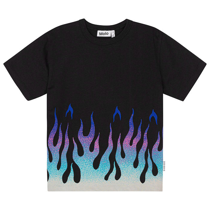 Футболка Molo – это идеальный выбор для мальчиков! Изготовленная из 100% натурального хлопка, она украшена ярким огненным принтом с градиентом цветов. Градиентный огонь с черными контурами и яркими сине-розовыми оттенками создает необычный и модный образ. На фотографиях видна аккуратная черная контрастная окантовка по краю и мягкая текстура ткани. Качество от бренда из Дании и внимание к деталям делают эту футболку отличным выбором для вашего мальчика!