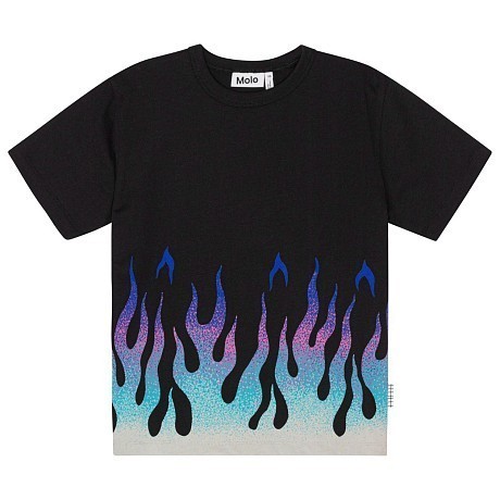 Футболка Molo – это идеальный выбор для мальчиков! Изготовленная из 100% натурального хлопка, она украшена ярким огненным принтом с градиентом цветов. Градиентный огонь с черными контурами и яркими сине-розовыми оттенками создает необычный и модный образ. На фотографиях видна аккуратная черная контрастная окантовка по краю и мягкая текстура ткани. Качество от бренда из Дании и внимание к деталям делают эту футболку отличным выбором для вашего мальчика!