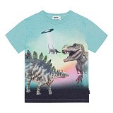 Серо-зеленая футболка для мальчиков Molo с динозаврами и летающим кораблем