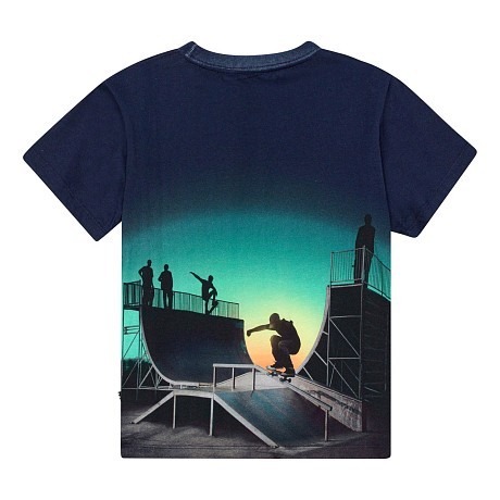 Футболка Molo – это идеальный выбор для юных скейтбордистов! Изготовленная из 100% натурального хлопка, она украшена ярким принтом с изображением скейт-парка. Футболка с круглым вырезом горловины и короткими рукавами идеально подходит для активного отдыха и игр. На фотографиях видна аккуратная окантовка по краю и мягкая текстура ткани. Качество от бренда из Дании и внимание к деталям делают эту футболку отличным выбором для вашего ребенка!