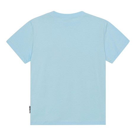 Футболка Molo – это идеальный выбор для юных динозавров! Изготовленная из 100% натурального хлопка, она украшена крупным принтом динозавра с пальмами на фоне тропического пейзажа. Нежная голубая основа с ярким принтом создает игривое и в то же время уютное настроение. На фотографиях видна аккуратная голубая окантовка по краю и мягкая текстура ткани. Качество от бренда из Дании и внимание к деталям делают эту футболку отличным выбором для вашего мальчика!