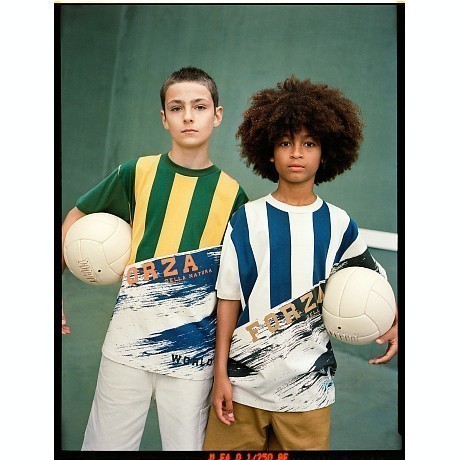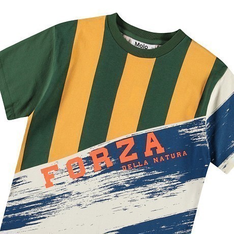 - 🎨 Дизайн: принт "Forza Della Natura", полосы в темно-зеленом, желтом и синем цветах