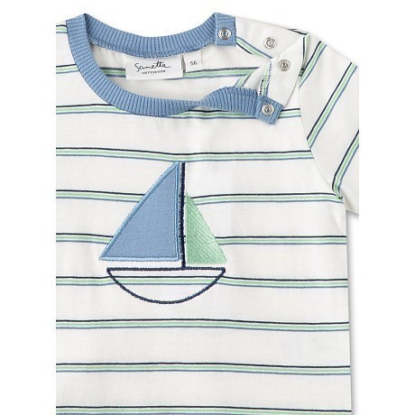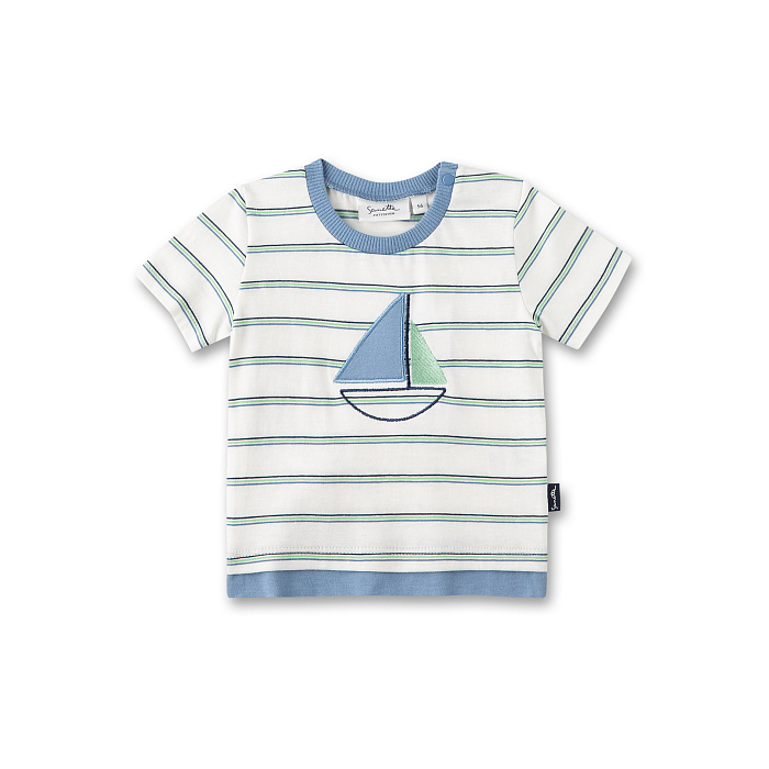 Футболка Sanetta Fiftyseven – это идеальный выбор для мальчиков! Изготовленная из 100% хлопка, она украшена очаровательным принтом парусника с голубыми и зелеными парусами на белом фоне. Нежная белая основа с яркими голубыми и зелеными акцентами создает морской стиль и в то же время уют. На фотографиях видна аккуратная голубая окантовка по краю и мягкая текстура ткани. Качество от бренда Sanetta Fiftyseven делает эту футболку отличным выбором для вашего малыша!