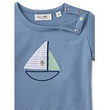 Футболка Sanetta Fiftyseven – это идеальный выбор для мальчиков! Изготовленная из 100% натурального хлопка, она украшена яркой аппликацией яхты с белым, зеленым и красным парусами. Нежная голубая основа с яркими акцентами создает ощущение морского приключения. На фотографиях видна аккуратная белая окантовка по краю и мягкая текстура ткани. Качество от бренда Sanetta и внимание к деталям делают эту футболку отличным выбором для вашего мальчика!