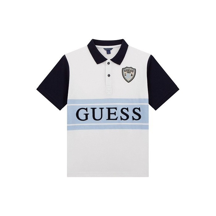 Белая сорочка Guess – идеальный выбор для мальчиков от 7 до 12 лет! Изготовлена из качественного хлопка, украшена логотипом бренда. Лаконичный дизайн синих полос и черного воротника делает эту модель универсальной. Быстрая доставка СДЭК по всей России.