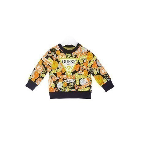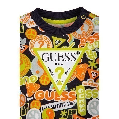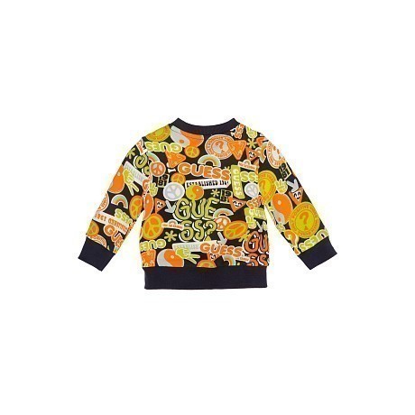 Джемпер Guess – это идеальный выбор для юных модников! Изготовленный из 100% хлопка, он украшен ярким принтом с символикой бренда, включая логотип Guess, надписи и различные узоры. Джемпер идеально подойдет для мальчиков, которые ценят комфорт и стиль. На фотографиях видна аккуратная окантовка по краю и мягкая текстура ткани. Качество от американского бренда Guess делает этот джемпер отличным выбором для вашего ребенка!