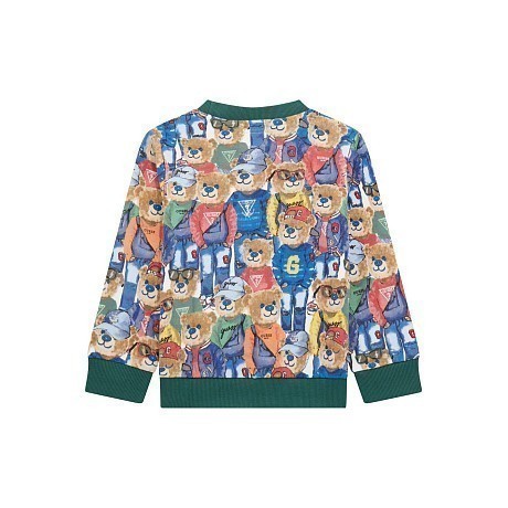 Джемпер Guess – это идеальный выбор для мальчиков! Изготовленный из 100% хлопка, он украшен очаровательными медведями в разных костюмах и аксессуарах. Темно-зеленая основа с яркими медвежьими принтами создает игривое и в то же время стильное настроение. На фотографиях видна аккуратная зеленая окантовка по краю и мягкая текстура ткани. Качество от бренда из США и внимание к деталям делают эту модель отличным выбором для вашего мальчика!