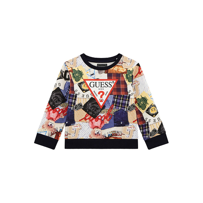 Джемпер Guess – это идеальный выбор для юных модников! Изготовленный из 100% хлопка, он украшен ярким принтом с элементами в стиле пэчворк, включая клетчатые узоры, надписи и изображения. Синий цвет подчеркивает стиль и современность модели. На фотографиях видна аккуратная окантовка по краю и мягкая текстура ткани. Качество от бренда из США и внимание к деталям делают этот джемпер отличным выбором для вашего ребенка!