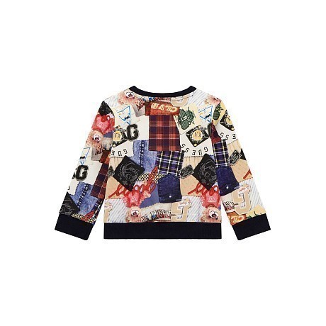 Джемпер Guess – это идеальный выбор для юных модников! Изготовленный из 100% хлопка, он украшен ярким принтом с элементами в стиле пэчворк, включая клетчатые узоры, надписи и изображения. Синий цвет подчеркивает стиль и современность модели. На фотографиях видна аккуратная окантовка по краю и мягкая текстура ткани. Качество от бренда из США и внимание к деталям делают этот джемпер отличным выбором для вашего ребенка!