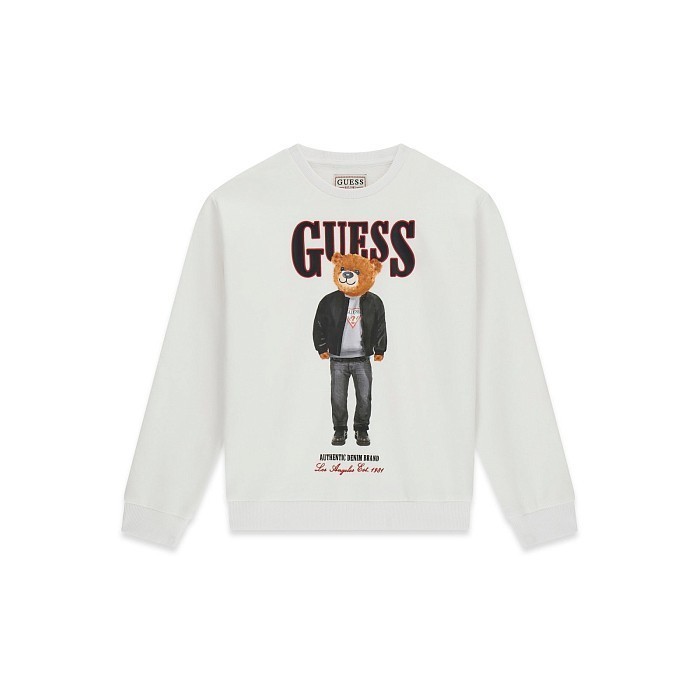 Джемпер Guess – это идеальный выбор для мальчиков! Изготовленный из 100% хлопка, он украшен стильным принтом с медведем и надписями. Белый цвет джемпера подчеркивает его универсальность и идеально сочетается с различными элементами одежды. На фотографиях видна аккуратная окантовка по краю и мягкая текстура ткани. Качество от американского бренда Guess делает этот джемпер отличным выбором для вашего ребенка!