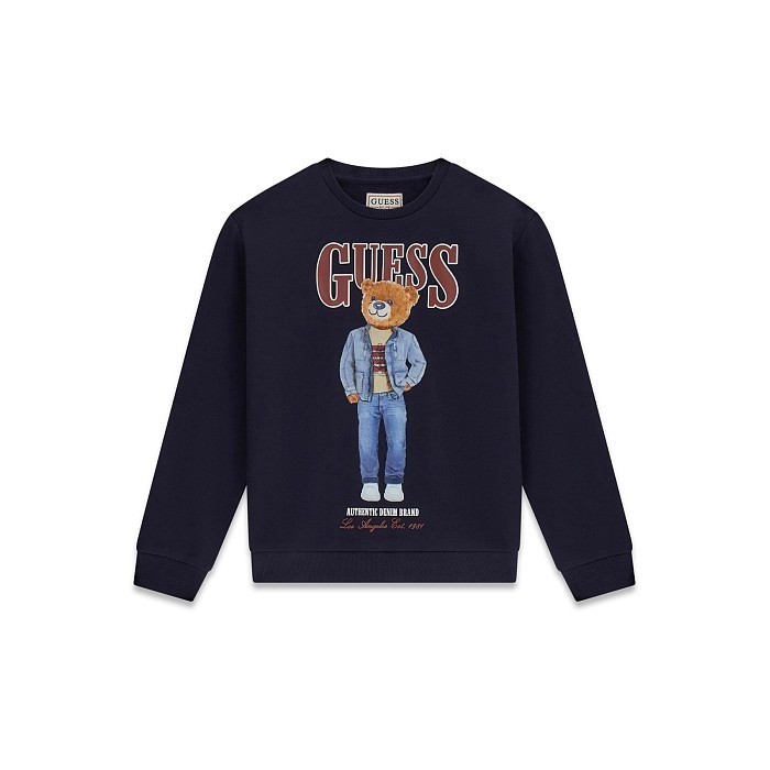 Джемпер Guess – это отличный выбор для вашего мальчика! Изготовлен из 100% хлопка, он украшен милым принтом медведя в джинсовом стиле. Джемпер идеально подойдет для мальчиков от 2 до 6 лет. На фотографиях видна аккуратная окантовка по краю и мягкая текстура ткани. Качество от американского бренда Guess обеспечивает комфорт и долговечность.