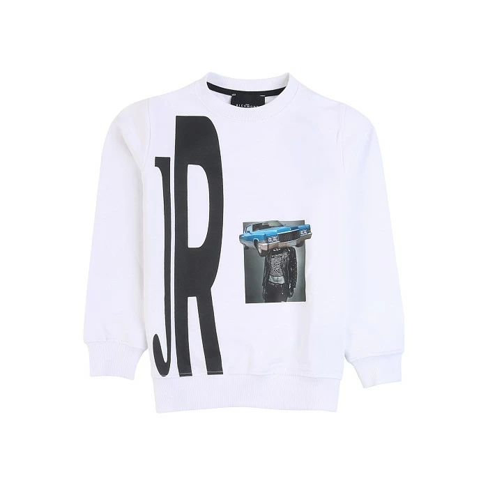 Джемпер John Richmond – идеальный выбор для подростков! Изготовлен из 100% хлопка, он украшен стильным принтом с надписью "JR" и изображением автомобиля. Белый цвет джемпера подчеркивает его универсальность и подходит к любому стилю. На фото видна аккуратная вышивка "JR" и изображение автомобиля, а также мягкая текстура ткани. Качество от бренда John Richmond и внимание к деталям делают этот джемпер отличным выбором для вашего подростка!