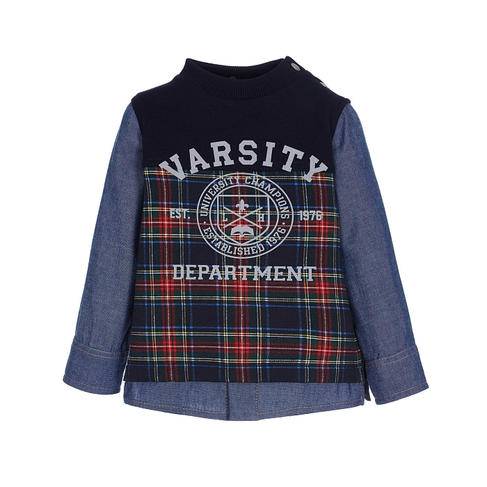 Джемпер Lapin House – это идеальный выбор для вашего юного модника! Изготовленный из 98% хлопка и 2% эластана, он сочетает в себе мягкость и эластичность. Джемпер украшен оригинальным принтом Varsity Department с клетчатым узором, который придает ему спортивный и модный вид. На фотографии видна аккуратная клетка с контрастными линиями и надписью Varsity Department. Качество от бренда из Греции и внимание к деталям делают этот джемпер отличным выбором для вашего мальчика!