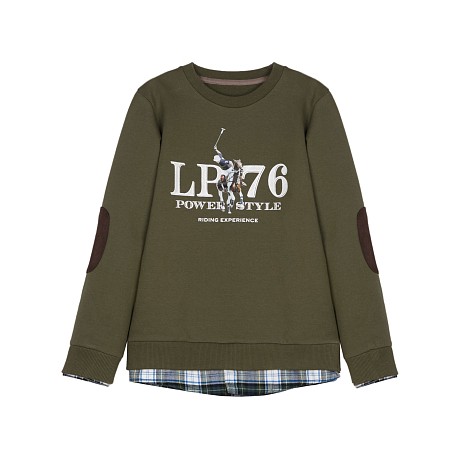 Хаки джемпер для мальчиков Lapin House с принтом лошади и надписью LP76
