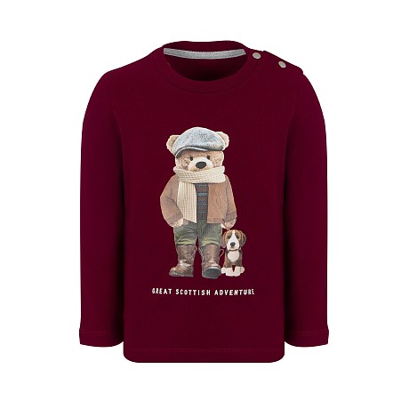 Джемпер Lapin House – это идеальный выбор для мальчиков! Изготовленный из 92% хлопка и 8% эластана, он украшен очаровательным принтом медведя и собаки. Бордовый цвет с белыми акцентами создает стильный и уютный настрой. На фотографиях видна аккуратная окантовка по краю и мягкая текстура ткани. Качество от бренда из Греции и внимание к деталям делают этот джемпер отличным выбором для вашего малыша!